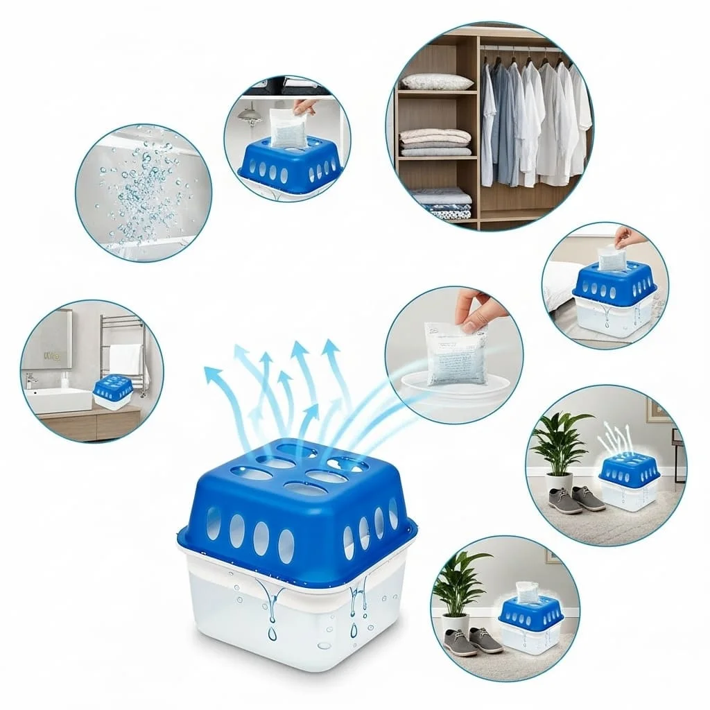 حبيبات نشطة ممتصة للرطوبة في علبة زرقاء شفافة،